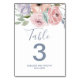 Detta dammiga rosafärgade blommiga bordskort är perfekt för en vår- eller sommarbröllop. Den romantiska blommiga designen har lila, rosafärgade och persikofärgade blommor arrangerade i en vacker mjuk pastellfärgad bukett. Kortet skrivs ut på framsidan och baksidan (dubbelsidigt). Lägg till varje bordnummer du behöver i din varukorg en och en.