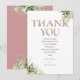 Med vacker, dammig rosa rosa grönskande bokstavsstil, kan detta chic tackkort för baby shower anpassas med ditt speciella tackmeddelande och namn. Designad av Thisisnotme©