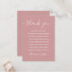 En elegant bröllopsfirande tack mottagning kort set. Personlig tackmeddelande med din speciella tacksamma hälsning i stilfull typografi på en dammig rosabakgrund. En speciell souvenir tack till dina gäster. Designad av Thisisnotme