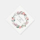 Elegant krans av vattenfärg med blommor och grönt, personliga pappersservetter. Designen har dammig rosé blomster och rustika lövgrenar.
