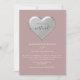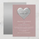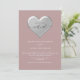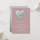 Elegant, modern, enkel dammig roséfärgad Zoom bröllopsinbjudan med silverfoliehjärta. Perfekt val för modern och romantisk virtuell bröllopsfirande.