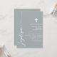 Fira det heliga tillfället vid en dopceremoni med denna eleganta, dammiga salvia-inbjudan. Med en minimalistisk design med modernt typsnitt och ett diskret kors är denna inbjudan perfekt för att inbjuda vänner och familj att delta i detta speciella evenemang. Den mjuka, dammiga salviagröna färgen och de enkla, rena linjerna ger en touch av sofistikation och elegans, vilket gör den idealisk för en sådan betydelsefull fest. Anpassa detaljerna för att skapa en unik och minnesvärd inbjudan till ditt barns dop.