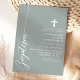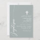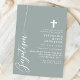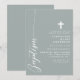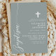 Fira det heliga tillfället för en dop med denna eleganta dammiga salvia-inbjudan. Med en minimalistisk design med modernt skrivstil och ett diskret kors är denna inbjudan perfekt för att bjuda in vänner och familj att delta i denna speciella händelse. Den mjuka dammiga salviafärgen och de enkla, rena linjerna ger en touch av sofistikering och grace, vilket gör den idealisk för en sådan meningsfull firande. Anpassa detaljerna för att skapa en unik och minnesvärd inbjudan för ditt barns dop.