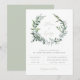 Vacker akvarell dammig salvie botanisk lövverkskrans, bröllopsinbjudan. Modern och chic grå och salvia typografisk design. Baksidan av kortet har en solid färg som visas i dammig salvia grön, som kan anpassas.