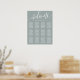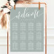 Välkomna era gäster med denna eleganta dammiga salvia-hyllning för sittplatser på bröllopet. Med en minimalistisk design och modernt typsnitt är denna sittplan perfekt för ett sofistikerat och stilrent bröllop. Den mjuka färgen och det rena upplägget ger en förfinad och organiserad look, vilket säkerställer att era gäster lätt hittar sina platser. Anpassa med era egna bordssättningar för att skapa ett unikt och sammanhållet tillägg till er bröllopsdekoration. Denna sittplan rymmer upp till 12 bord, vilket gör den ideal för en välplanerad och elegant fest.