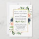 Modern elegant akvarell eukalyptus grönska rosa rosor dammiga blå rosor guld ram bröllopsinbjudan - Dammig blå baksida