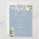 Denna eleganta dammiga blå grönska blomster förhandsinbjudan kan anpassas med din information i chic typografi. Designad av Thisisnotme©