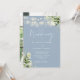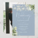 Denna eleganta dammiga blå bröllopsinbjudan, med vackra strängljus och blomstergrönska, kan anpassas med din information i chic typografi med ditt speciella foto på baksidan. Designad av Thisisnotme©