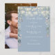 En elegant vildblomma akvarell blommor och strängljus bröllop spar datum-kort med din fest detaljer inställd i elegant vit typografi på en stilren dammig blå bakgrund. Med ditt speciella foto på baksidan. Designad av Thisisnotme©