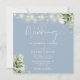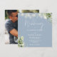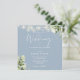 Denna eleganta dammiga blå bröllopsinbjudan, med fina strängljus och blomstergrönska, kan anpassas med din information i chic typografi med ditt speciella foto på baksidan. Designad av Thisisnotme©