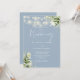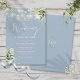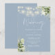 Denna eleganta dammiga blå bröllopsinbjudan har vackra strängljus och blomstergrönska och kan anpassas med din information i chic typografi med dina monograminitialer på baksidan. Designad av Thisisnotme©