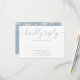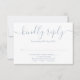 Ett stilfullt RSVP-kort med dina detaljer i chic typografi och personifierat med dina namn, handritad blomsterlövverk och strängljus på en dammig blå bakgrund på baksidan. Designad av Thisisnotme