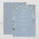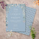 Vackra blommande vildblommor och grönska inramar detaljerna från er speciella bröllopsfest med elegant vit typografi på en chic dammig blå bakgrund. Designad av Thisisnotme©