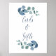 Eucalyptus-kort och gåvor skylt med elegant kalligrafi och eucaluptus blad. Enkel underdriven botanisk design med vattenfärg lövverk och grönska i dammig blågrön färg. Perfekt för eucalyptus och botanisk grönska tema bröllop, bröllopsdusch, baby shower etc. Vänligen bläddra i min butik - dammig eucalyptus samling - för matchande artiklar.