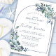 Dammigt blå blomsterbåge 90-års födelsedagsinbjuda inbjudningar