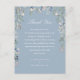 En elegant dammblå blomsterbröllopsfirande tack mottagningskort. Personliggjort med ditt speciella tackmeddelande i stilfull typografi. En speciell souvenir tack till dina gäster. Designad av Thisisnotme
