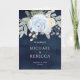 Dammigt blå blomstergift QR-kod Navy Bröllop Inbjudan