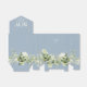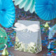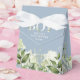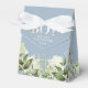 En elegant presentförpackning för babykalas med texten It's a boy, med grönska och chic typografi på en dammigt blå bakgrund. Du kan anpassa med ditt eget tackmeddelande under locket. Ett perfekt sätt att tacka dina gäster! Designad av Thisisnotme©