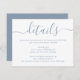 Ge dina gäster viktig information med detta eleganta moderna dammiga blå bröllopsföljekort som har en modern typsnitt. Matchande artiklar finns tillgängliga.