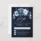 Elegant dammig blå / Marinblå tema bröllop RSVP-kort med elegant bukett av dammig blå, marinblå, skifferros knoppar och blå eukalyptusblad. Vänligen kontakta mig för hjälp med anpassning eller om du behöver någon annan produkt med denna design.
