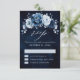 Dammigt blå skiffer marinblå floral botanisk bröll OSA kort