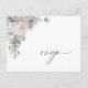 Elegant akvarell dammig blå trädgårdsblomma, svarskort. Elegant grå typografisk designstil.
