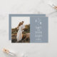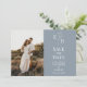 Dammigt Blått Blommigt Monogram Foto Spara Datum Inbjudningar