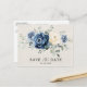 Dammig blå blomsterbröllopsinbjudan med elegant bukett av marinblå, kunglig blå, vit, guld, champagne elfenben, rosafärgad ros, ranunculus blomknoppar och salvia gröna eukalyptusblad och elegant akvarellbukett. Vänligen kontakta mig för hjälp med anpassning eller om du behöver någon annan produkt med denna design.