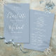 Dammig blå signatur skript bröllopsprogram med chic modern typografi, detta stilrena bröllopsprogram kan anpassas med din speciella bröllopsdagsinformation. Designad av Thisisnotme©