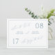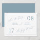 Ett vackert dammigt blått kort för att spara datum med enkelt, modernt kalligrafi för det perfekta sättet att tillkännage ert kommande bröllop.