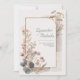 Tillkännage din kärlek med den mjuka, eteriska skönheten hos denna dammgrå rosa guld folie eukalyptus inbjudan. Designen har ett känsligt, luftigt arrangemang av akvarell botaniska element, inklusive mjuka rosa blomkluster och dämpade eukalyptusblad, som skapar en kaskad av romantik. Hela inbjudningsområdet är elegant inramat av en skarp, skimrande guld folierad linjekant, som perfekt kontrasterar de mjuka, organiska botaniska elementen. Moderna nyanser av guld glitter prickmönster ger en subtil, lyxig textur till den varma beige bakgrunden. Detta är den perfekta pappersvaran för ett vår-, trädgårds- eller bohemiskt chic bröllop som söker sofistikerad skönhet. Du kan enkelt använda denna unika inbjudan för att visa dina namn och bröllopsdetaljer, för att bifoga svarsblanketter, för att ge information