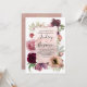 Dammros och burgunderfärgade blomsterbröllopsjubil inbjudningar