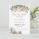 Meddela din speciella dag med stil med detta eleganta ”Spara datum”-kort, prytt med mjuka blushfärgade blommor, delikat grönska och graciöst dammrosaskrift. Den romantiska designen sätter tonen för din kommande bröllopsdag och gör ett bestående första intryck på dina gäster.