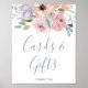 Den här dammiga rosa blommiga vigselkort- och presentskylten är perfekt för en vår- eller sommarbröllop. Den romantiska blomdesignen har lila, rosafärgade och persikofärgade blommor arrangerade i en vacker mjuk pastellfärgad bukett. Textraden längst ner på skylten kan anpassas med datumet, brudens och brudgummens namn eller ett kort meddelande som "Tack". Den här skylten kan användas för ett bröllop, brudvisning eller någon annan tillställning eller fest.