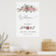 Elegant dammig rosa blomsterbröllopsfest välkomstaffisch med romantiska akvarellrosor.