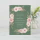 En romantisk komposition av mjuka rosablommor i blushrosa och delikat grönska pryder en djupgrön salviafond. Denna design inger en känsla av underdriftad elegans och naturlig skönhet. Perfekt för en förfinad tillställning.