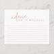 Fånga romantiken i tillfället med detta tidlösa Dammrosa & Vita Minimalist Bröllopsfest Tips Bilaga Kort. Detta eleganta, moderna kort ger ett vackert sätt för nära och kära att dela sin visdom och stöd med det lyckliga paret. Den rena, minimalistiska estetiken låter de hjärtliga meddelandena lysa. Ge bruden en souvenir hon kommer att vårda länge efter att festen är över.