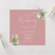 Dammrosgrön flora broderad fyrkantig vigselmonogra inbjudningar