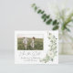 Dammsalvia Gröna Spara Datum Postkortet är ett bröllopsanmälningskort med en mjuk, dämpad grön färg och ett foto av paret. Den eleganta designen kombinerar ett personligt foto med en chic grön nyans och skapar ett varmt, modernt och stilrent meddelande. Det är det perfekta valet för par som vill meddela sin bröllopsdatum på ett enkelt men ändå effektfullt sätt.