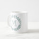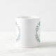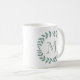 Tillsätt en elegant personlig touch till valfri dryck med denna mintgröna och vita kaffekopp. Designen har moderna lagerblad och stilfull typografi initial. Monogrammet i mitten är enkelt att anpassa och kan vara olika på fram- och baksidan. Blir en elegant bröllopspresent som gåva och kompletterar chic bröllopsgrönska. Lämpar sig för brudtärnor, brudgumsvänner, blomsterflicka, ringbärare, mor och far till bruden och brudgummen etc.