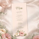 Fullt anpassningsbar text låter dig anpassa meny detaljer och rätter. Designad för par som föredrar subtila toner och tidlös blommande elegans. Koordinerar sömlöst med dammsnosa bröllopspapper.