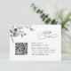 Designad för att samordna med vår Boho eukalyptus bröllopssamling, har detta anpassningsbara QR-kod RSVP-kort, en akvarell eukalyptusgren med kalligrafisk text, i kombination med en klassisk serif och modern sans-serif-teckensnitt i svart. Matchande artiklar finns tillgängliga.