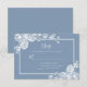 Det här eleganta dammiga blå blommande bröllop RSVP-bifogarkortet är elegant, modernt, chic och charmerande - perfekt för ett trädgårds-, botaniskt-, rustikt-, romantiskt-, blomstergestaltat-, formellt eller vintagebröllop. Dess utsökta kombination av graciösa dammiga blå rosor och luftig grönska är flödande, delikat och vacker. Dess monokroma design är fantastisk och klassisk.