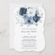 Flyttar hemma Dammtorblue och vit elegant inbjudningsdesign | blomsterrik elopement-anmälan