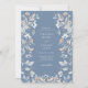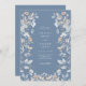 Träd in i en fantastisk firande av kärlek och natur med vår blå boho blomsterbröllopsinbjudan. Detta fantastiska och unika kort genomsyras av en touch av boho chic med vackert handmålade akvarellvilda blommor i mjuka nyanser av bleka och dammiga blå toner som kompletteras av jordnära tanfärger. Vår lättanpassade mall låter dig ge uttryck för din personliga röst, vilket gör den verkligen till din egen. Detta vackra kort är perfekt för romantiska, eleganta bröllop när som helst under året!