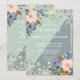 Denna fantastiska bröllopsinbjudan har en tudelad bakgrund i dammig blå och ljust grön med vackra blommor, eucalyptusgrönska och en persikofärgad kant. Man kan känna sig som om man stod i en härlig trädgård. Vit text och inslag av kalligrafi är en perfekt komplettering till de vackra blommorna. Ett underbart designval för att sätta tonen för din bröllopsfest. För eventuella designfrågor eller ytterligare anpassning och/eller matchande artiklar, skicka bara ett mejl till charmdesignstudio@rcn.com, så hjälper vi dig gärna. Se länken till samlingen på denna sida för att se alla matchande artiklar i denna vackra design.