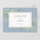 En elegant dammig blå akvarell grönska bröllops detaljer information inneslutande kort personlig med dina speciella detaljer i stilfull typografi och dina namn och bröllopsdatum på baksidan. Designad av Thisisnotme