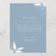 Välkomna era gäster med värme och stil med "Dammblå Modern Minimalistisk Grenblad Välkomstbrev Tidslinjekort" från Visual Studio på Zazzle! Detta sofistikerade kort har en lugnande dammblå duk dekorerad med minimalistiska vita grenblad, som sätter tonen för en minnesvärd fest.