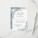 Samla dina gästsvar med stil med detta eleganta "Dusty Blue and Gold Floral" RSVP-kort. Designen har romantiska akvarellblå rosor i kombination med moderna falska guldgeometriska accenter, som passar perfekt till din inbjudan.