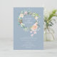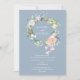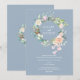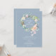 Med en vacker akvarellrosor blomsterkrans. Denna botaniska bröllopsinbjudan kan anpassas med dina speciella bröllopsdetaljer i modern vit typografi på en dammig blå bakgrund. Baksidan har en matchande krans som omsluter era initialer. Designad av Thisisnotme